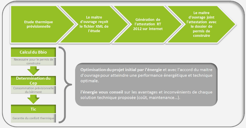 Pour ces raisons, i'énergie réalise simultanément une étude thermique complète et le calcul du Bbio. De plus, cette étude thermique est nécessaire d'un point de vue technique et financier pour optimiser votre projet.